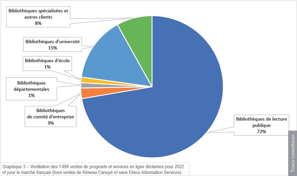 Cela permet une meilleure représentation des ventes des entreprises intervenant auprès des grandes bibliothèques ou des grands réseaux de bibliothèques : ainsi, 1 300 postes utilisent des logiciels installés par AFI-BibLibre en 2022, 1 250 ceux de DM Cultura, 534 ceux de GMInvent, 528 ceux de C3RB informatique, 500 ceux de Novatice, 442 ceux de LOGIQ Systèmes, 400 ceux d’Axiell, 246 ceux de Microbib, 153 ceux de Crescendo Systèmes, 68 ceux de Microbib et 53 ceux de Cadic Services.